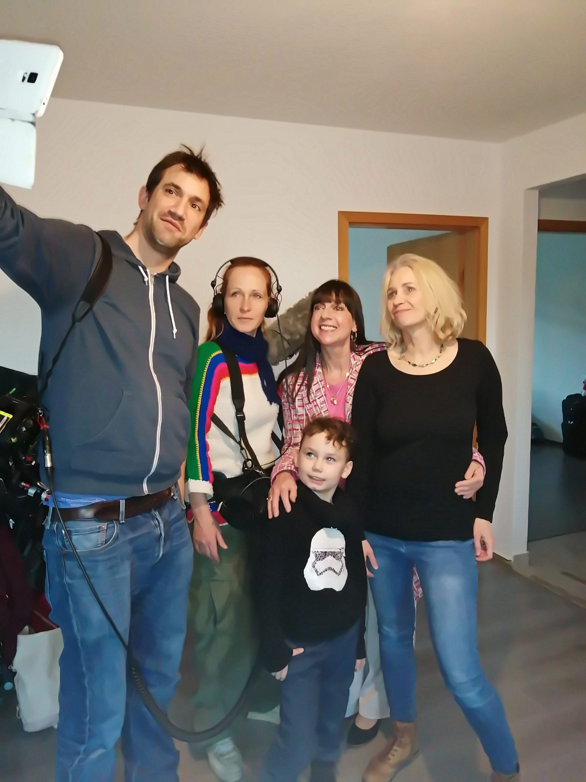 Am Tage des Einzugs in die neue Wohnung noch schnell ein Foto mit der Filmemacherin und Regisseurin Katrin Wegner, dem Kamerateam,